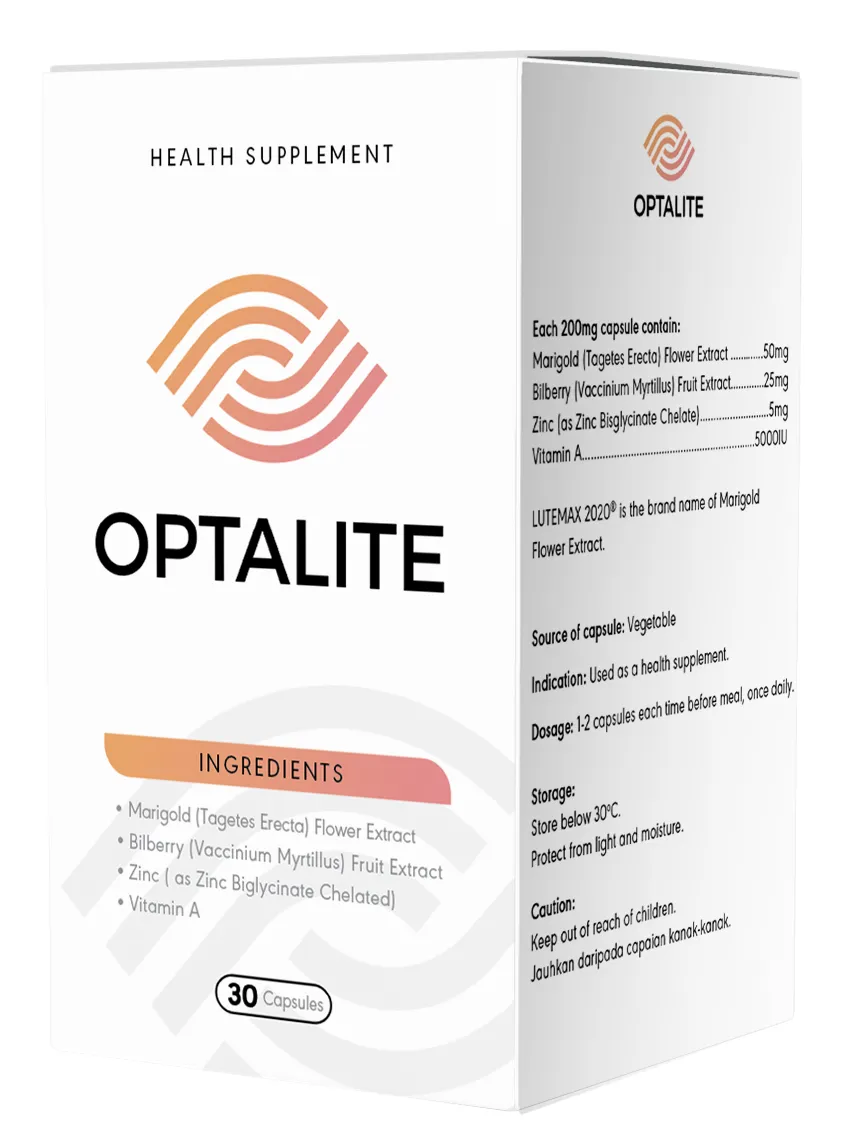 Optalite 100% diperbuat daripada bahan semulajadi dan tiada kesan sampingan. Optalite adalah ubat pelbagai fungsi yang menjadikan kesihatan mata lebih optimum.