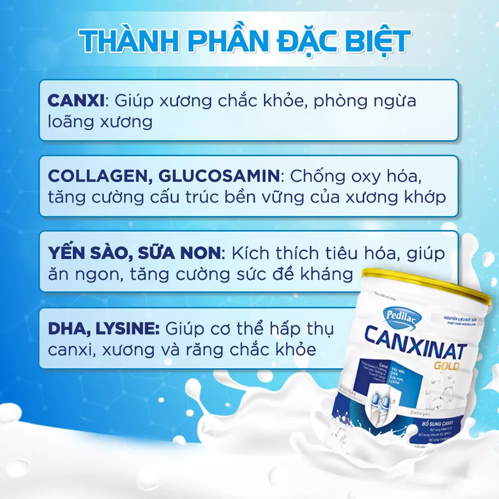 Pedilac Canxinat Gold VN là một sản phẩm độc đáo chứa các thành phần tự nhiên quý giá, như sữa non, canxi nano, và các dưỡng chất quan trọng khác. Đặc biệt, sữa non là một nguồn cung cấp canxi vô cùng dồi dào và dễ dàng hấp thụ.